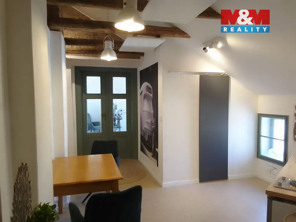 Okna jsou orientována do klidného vnitrobloku, což zajišťuje příjemné bydlení i přesto, že se nemovitost nachází v samotném centru města. Prostor byl dosud využíván jako ateliér, ale lze jej snadno upravit pro pohodlné bydlení.