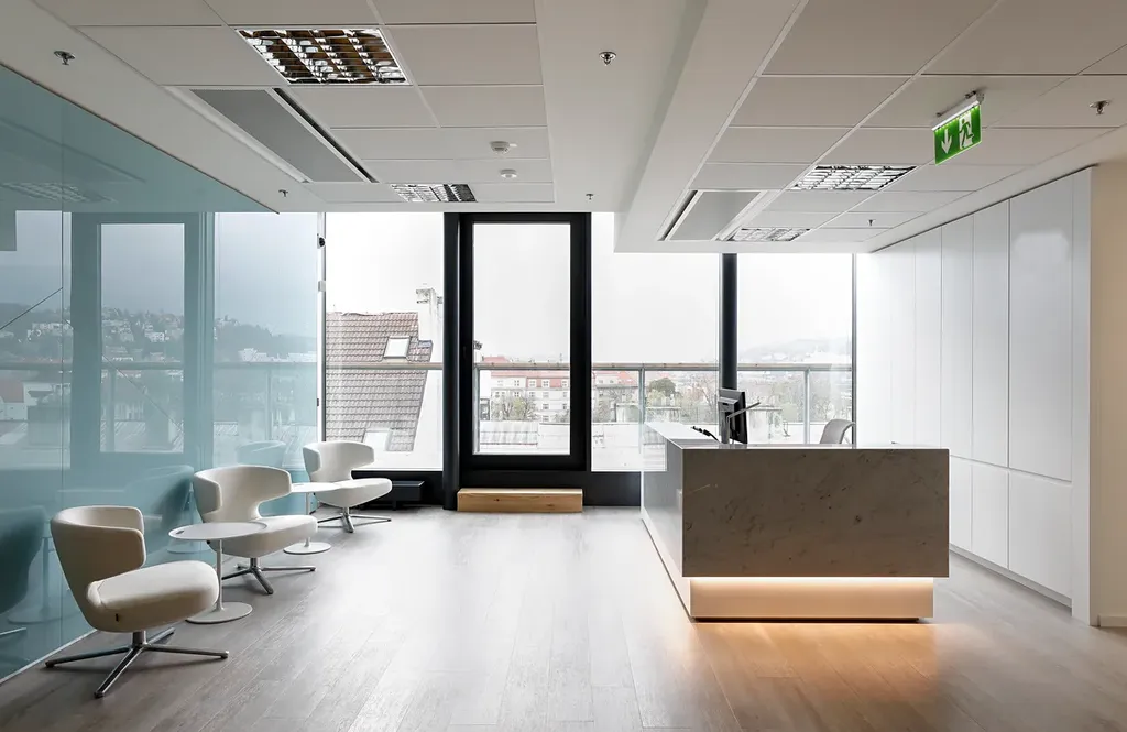 Budova FIVE vám nabízí jedinečnou příležitost pronájmu exkluzivní kanceláře v nejvyšším patře s výhledem na řeku a soukromou terasou o rozloze 200 m².