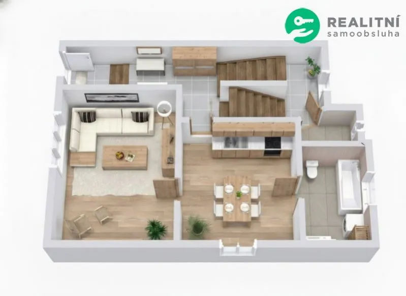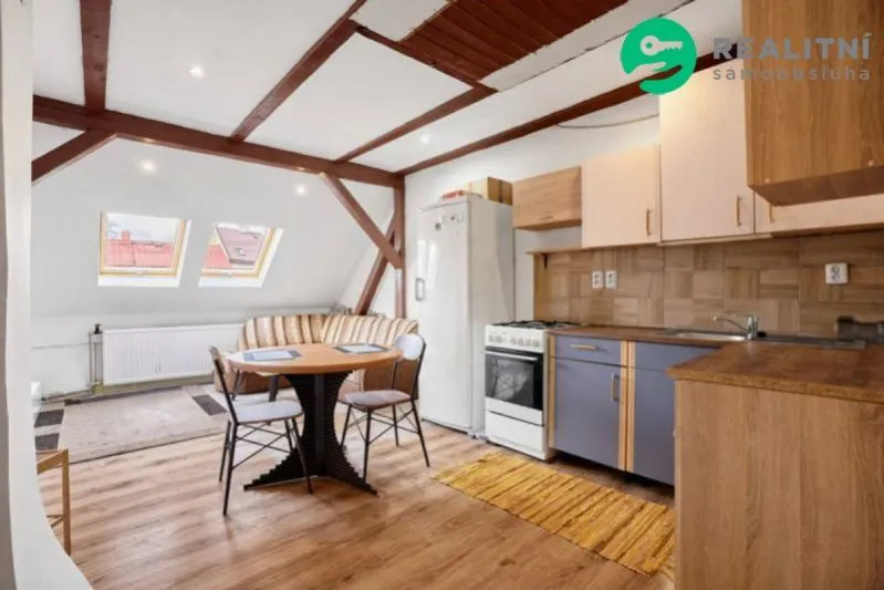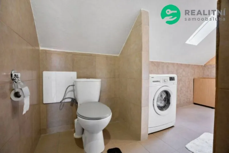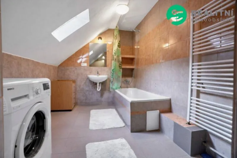 vznikl při rekonstrukci podkroví v roce 2016, rohová kuchyňská linka, koupelna s vanou a toaletou.
