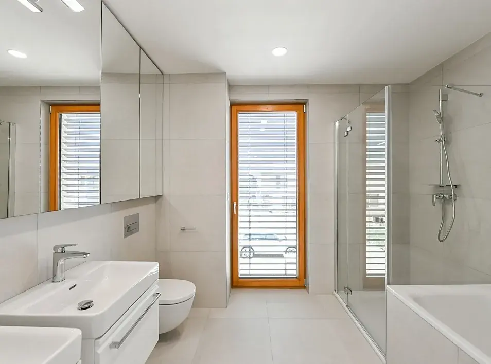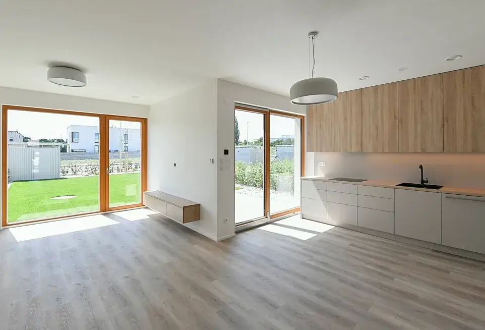 Standard domu výrazně převyšuje běžnou nabídku na trhu. Samozřejmostí je podlahové vytápění, rekuperace, chlazení, tepelné čerpadlo IVT, a inteligentní systém ovládání domácnosti, který umožňuje vzdáleně řídit komfort celého domu s maximální jednoduchostí. Atmosféru doplňují dřevěná Euro okna, elektricky ovládané předokenní žaluzie a kvalitní materiály v podobě vinylových podlah a dlažby. Velkoryse řešené vestavěné úložné prostory v každé místnosti jsou citlivě integrovány tak, aby nenarušovaly čistý design interiéru. Detail, který oceníte při každodenním užívání, představuje inteligentně řešené osvětlení chodeb s automatickým spínáním, jež nenápadně přispívá k celkovému komfortu a nadstandardu bydlení.