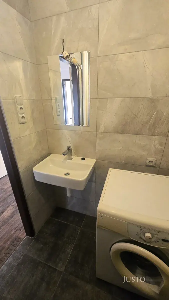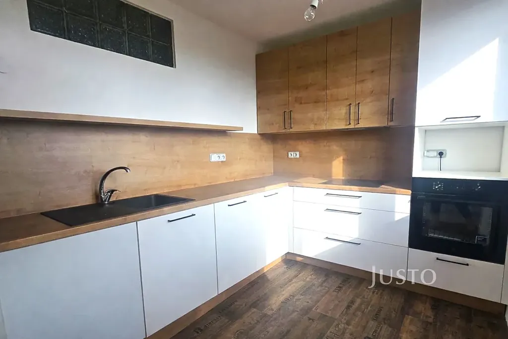 Dispozice bytu nabízí praktické a komfortní bydlení. Podlahy jsou kombinací parket a vinylu, v koupelně se nachází sprchový kout, toaleta je samostatná. Byt je částečně vybaven – k dispozici je lednice, pračka, el. trouba.