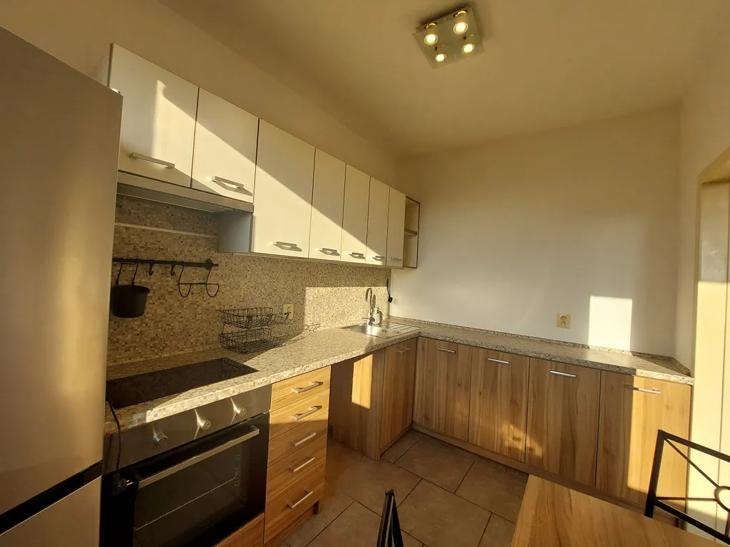 Nabízíme Vám k dlouhodobému pronájmu slunný byt o dispozici 2+1 v klidné části Ostravy-Muglinova. Byt se nachází ve 4. NP, je orientován západním směrem a skýtá výhled do širokého okolí. Kuchyňská linka je vybavena sklokeramickou dvouplotýnkovou varnou deskou, horkovzdušnou troubou a lednicí s mrazákem. Dále je v kuchyni prostor na pračku a jídelní stůl se židlemi. Ložnice je neprůchozí a disponuje praktickou šatnou. V koupelně je vana, umyvadlo a toaleta, na chodbě je odkládací stěna a skříň.
