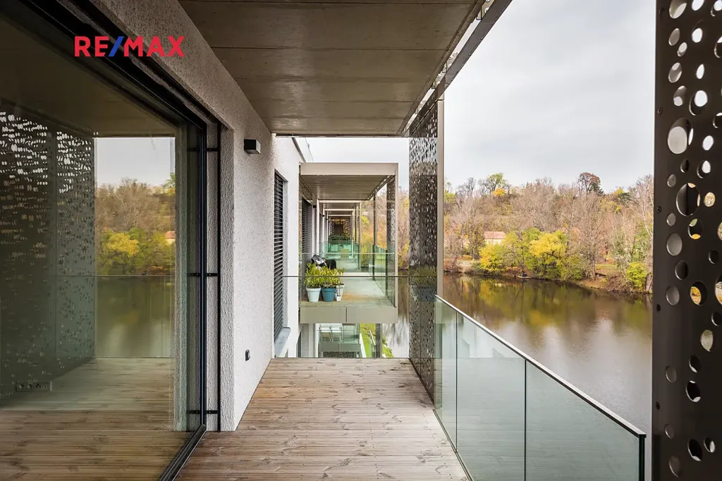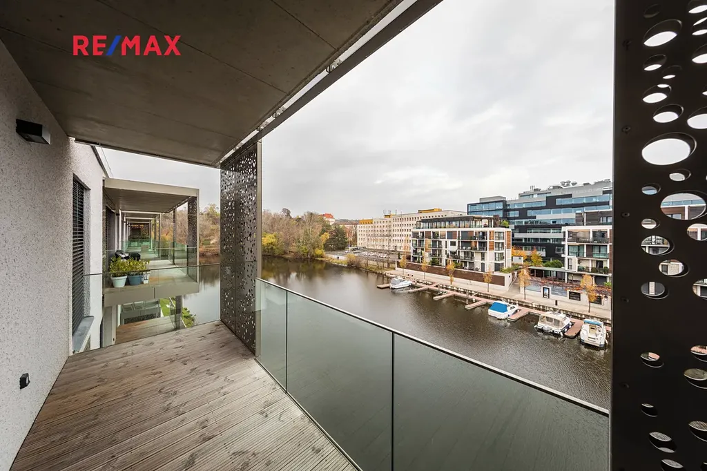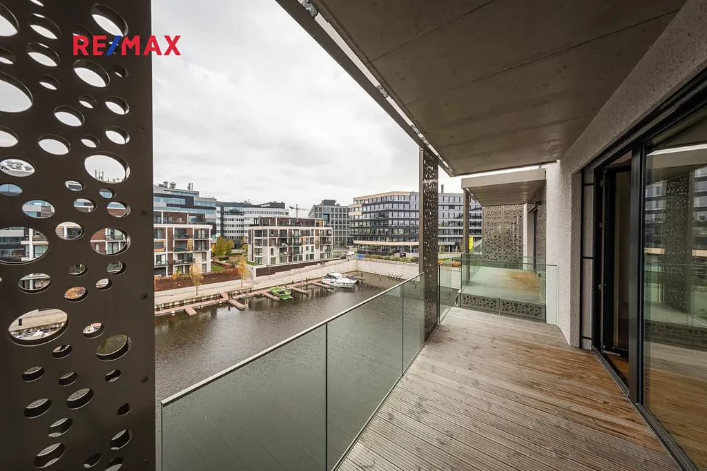 Dovolujeme si vám nabídnout pronájem exkluzivního bytu s vysokým standardem dokončení v rezidenci DOCK, v části Marina Boulvard. Tento prosluněný byt ve 2. patře nabízí dispozici 2+kk, celkovou plochu 68m2, prostornou terasu o velikosti 11m2 s výhledem na řeku. Obývací pokoj (27m2) disponuje pohovkou, jídelním stolem se židlemi, konferenčním stolkem a dalšími skříňkami, dále plně vybavenou kuchyní se spotřebiči - myčka nádobí, varná deska, digestoř, elektrická pečící trouba, lednice s mrazničkou, vše doplněno dostatkem úložného a pracovního prostoru. Ložnice o velikosti 16m2 s vestavěnou skříní, postelí a nočními stolky. V obytných místnostech je dřevěná podlaha, v ostatních místnostech dlažba. Okna jsou vybavena veleními žaluziemi. Prostorná a elegantní koupelna (5m2) nabízí sprchový kout, umyvadlo, toaletu a topný žebříček, druhá toaleta je umístěna u vstupní haly. V bytě najdeme také komoru s pračkou, vhodnou též pro ukládání věcí. Byt má intelignetní domácí systém s centrálním panelem, kterým lze ovládat veškeré osvětlení, připojení elektrospotřebičů, topení a mnoho dalšího, včetně video intercomu.