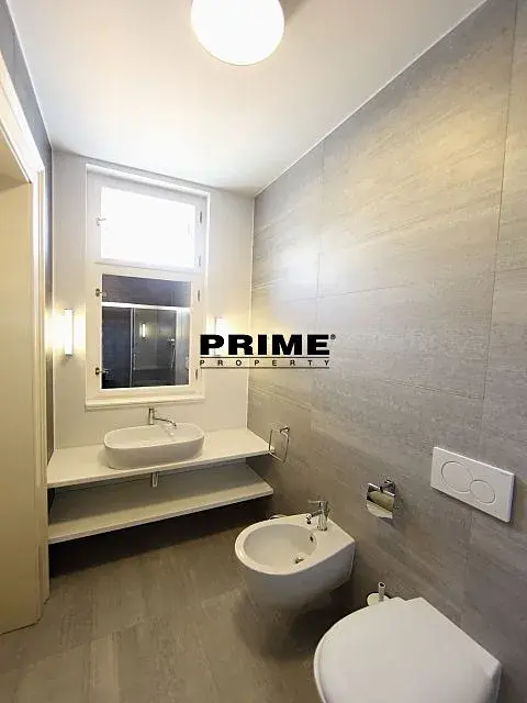 Zrekonstruovaný, světlý, 2 ložnicový, nezařízený byt se 2 koupelnami k pronájmu, 3+kk, 94m2, s parkovacím stáním pro jedno auto ve dvoře a se sklepem. Byt je situovaný v 5. patře zrenovovaného secesního bytového domu s výtahem.