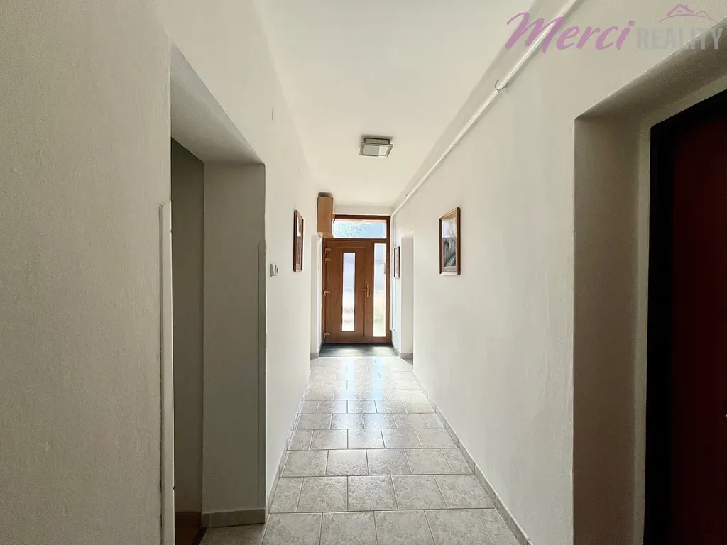 Jednopodlažní dům s částečně využitým podkrovím nabízí dispozici 4+1. Vedle domu se nachází vjezd na pozemek s elektrickým ovládáním a samostatná garáž je umístěna dále na pozemku. Součástí nemovitosti jsou také hospodářské prostory, které jsou ve velmi dobrém stavu. Je zde i přistavěná zastřešená pergola přiléhající k domu, která nabízí příjemné posezení pro chvíle odpočinku. Celý pozemek je výjimečně slunný- slunce tu svítí od brzkého rána až do večera.