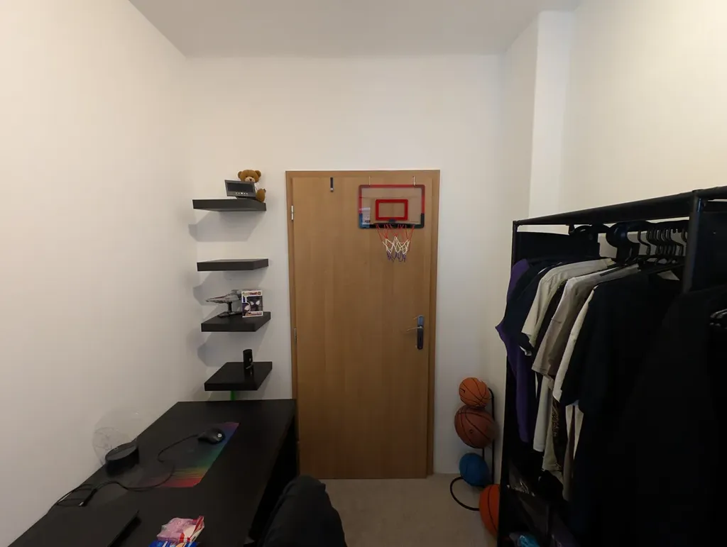 skládá se: zádveří, obývací pokoj 16 m², chodba, komora, dětský pokoj 17 m², pokoj 6 m², kuchyně 11 m², koupena a samostatné toalety. K jednotce náleží garáž a sklep, z komory je vstup do sklepa a garáže. Jednotka prošla rekonstrukcí v roce 2011, od té doby v obývaném stavu.