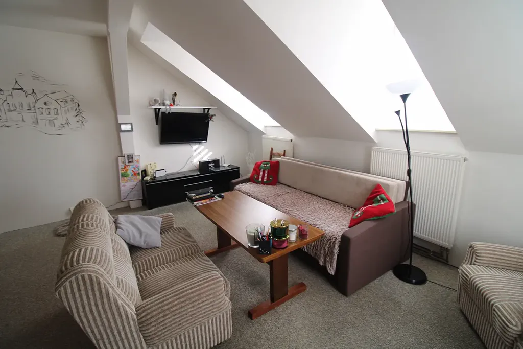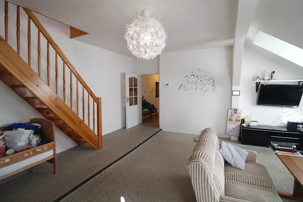 Nabízíme k prodeji světlý mezonetový byt o dispozici 2+1, 97 m2, v 4. nadzemním podlaží cihlového domu bez výtahu v ul. Kolmá, v centru lázeňské zóny Karlových Varu.