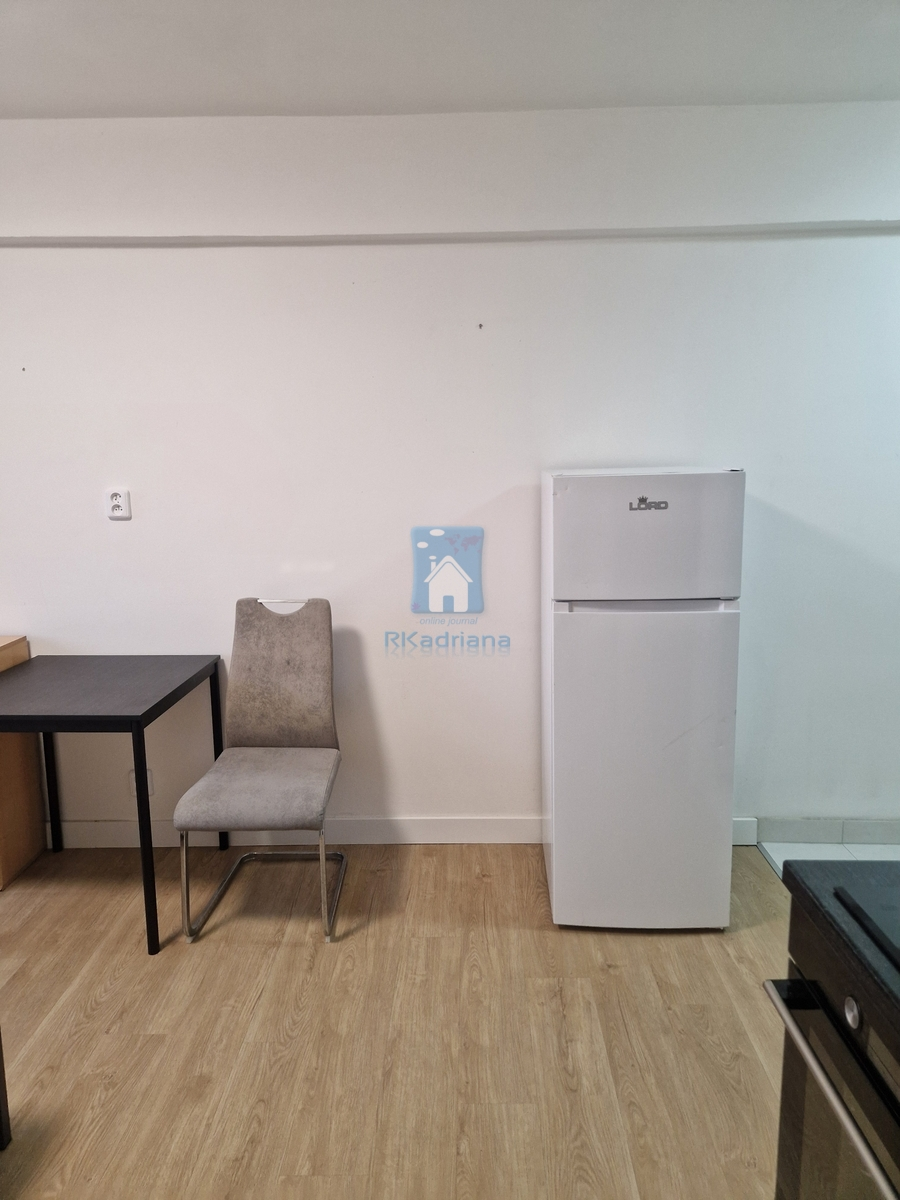 Dispozičně je byt rozdělen na chodbu, pokoj s kuchyňským koutem a koupelnu se sprchovým koutem a toaletou.