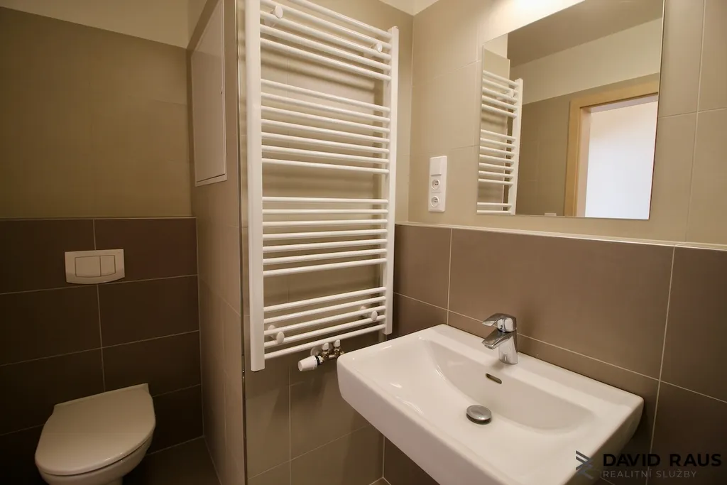 První naše kroky vedou do předsíně (7,68 m²), ze které se přesuneme dále do obývacího pokoje s kuchyňskou linkou (22,65 m²) a vlastním vstupem do prostorné lodžie(5,3 m²), vybavené posuvným stínícím systémem. V obývacím pokoji instalována rekuperační jednotka. V bytě je nová kuchyňská linka včetně kvalitních elektrospotřebičů: sklokeramická varná deska, elektrická trouba, digestoř, mikrovlnná trouba, lednice s mrazákem. Součástí vybavení bytu je rovněž pračka a svítidla. V celém bytě se nachází plovoucí podlaha, mimo koupelny společné s toaletou (3,95 m² ), kde se nachází dlažba.