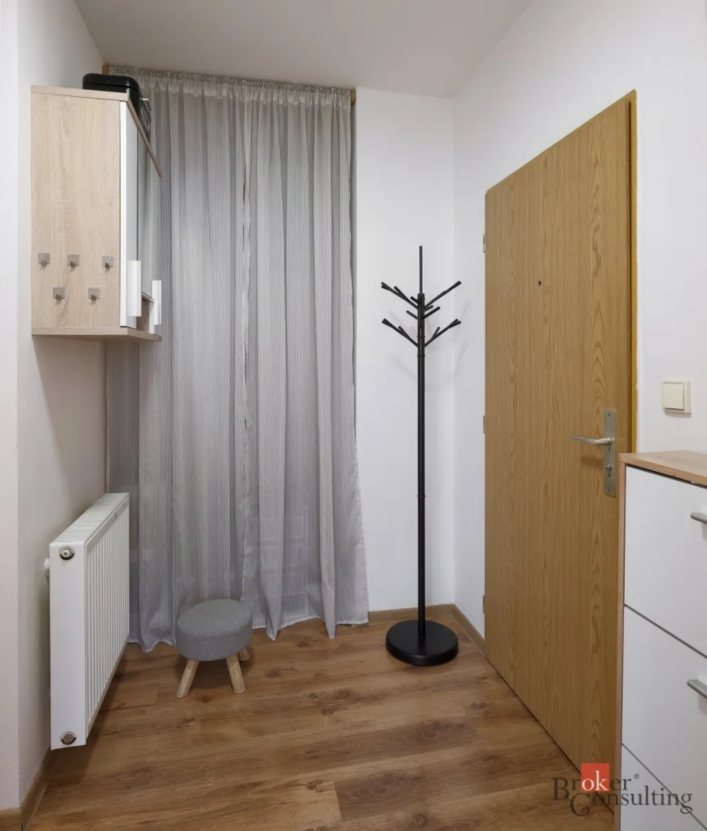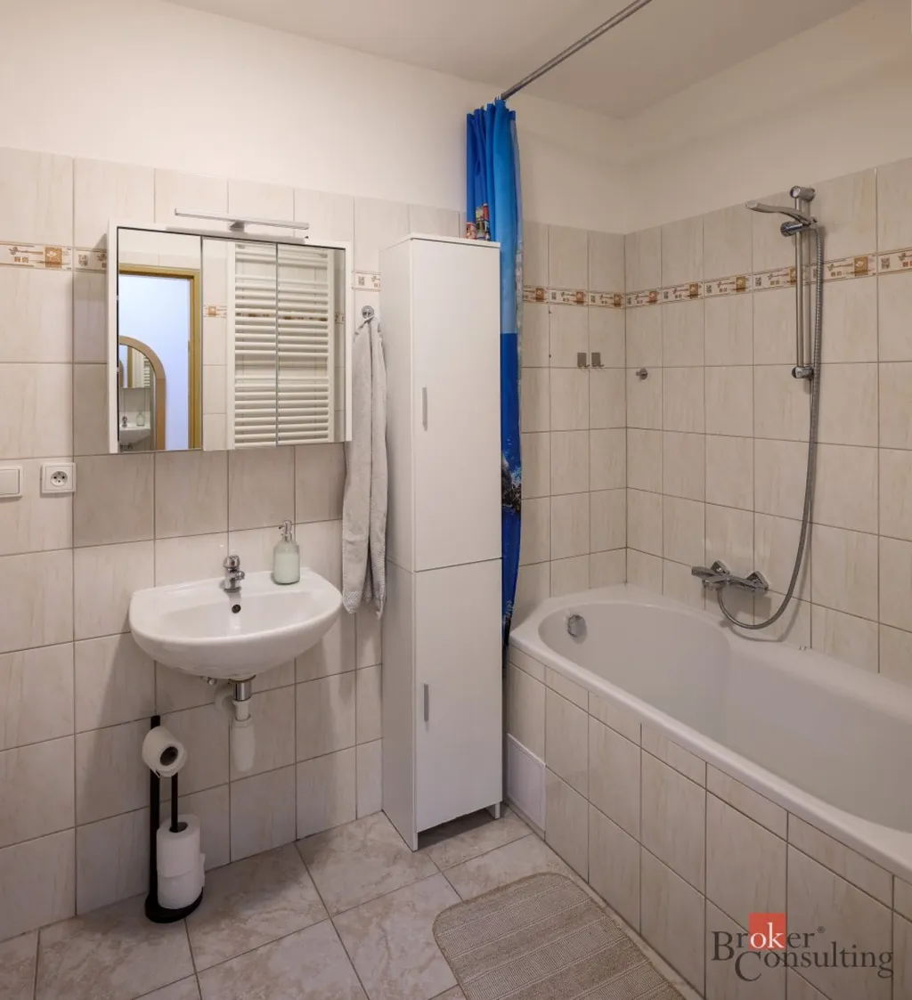 Tento světlý byt s okny na západ umístěný ve třetím podlaží je po kompletní rekonstrukci z roku 2010, kdy byly provedeny nové rozvody vody, elektřiny i plynu a okna vyměněna za plastová. Ohřev vody a topení je vlastním plynovým kotlem.