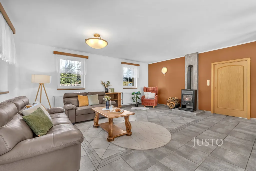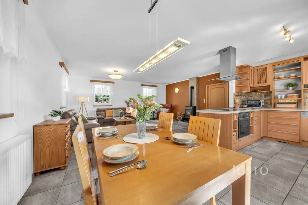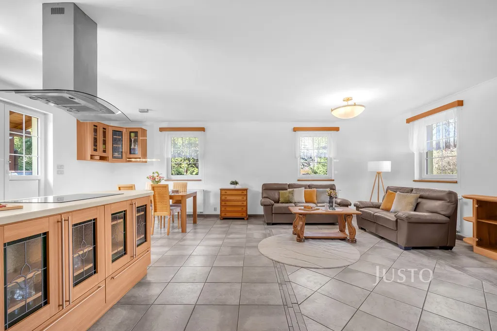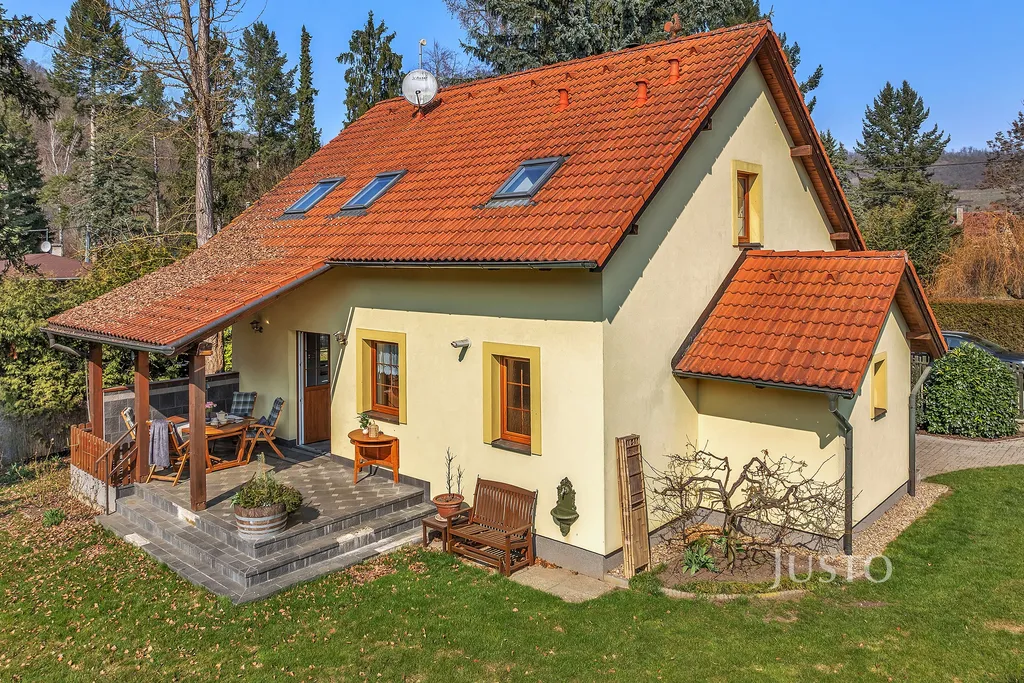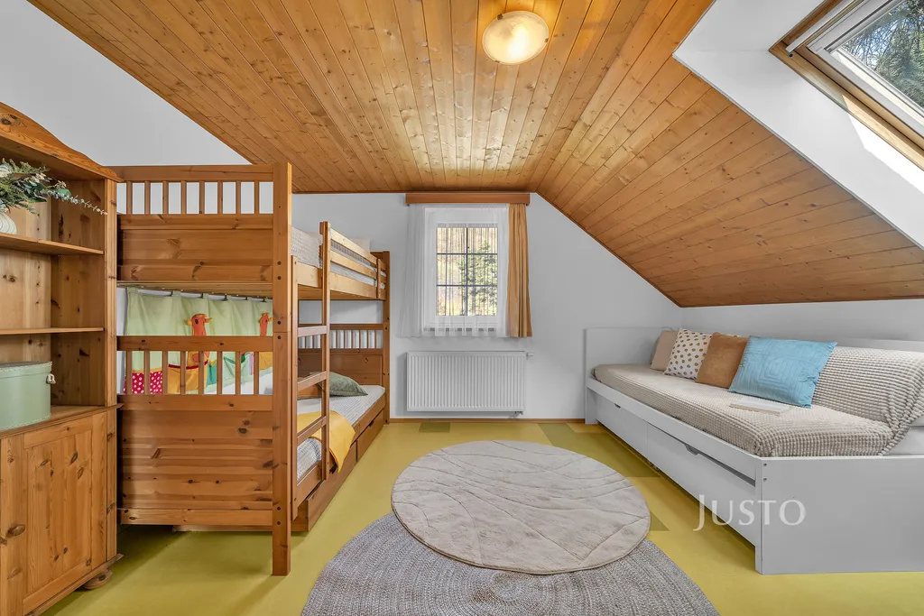 Chata stojí na pozemku o celkové ploše cca 646 m² a nabízí užitnou plochu cca 120 m².