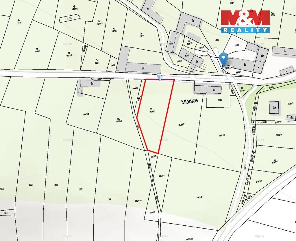 Nabízíme k prodeji slunný pozemek o výměře 1922 m2 určený k výstavbě rodinného domu o 1 nadzemním podlaží a obytném podkroví v malebné obci Mladice u Zavlekova. Pozemek je mírně svažitý a nabízí tak krásný pohled do okolní krajiny. Více jak polovina pozemku od silnice směrem dál je zastavitelná a zbylá část pozemku může sloužit jako zahrada nebo sad. V minimální vzdálenosti od pozemku vede nízké napětí elektřiny a je zde možnost se odtud připojit. Vzhledem k absenci vodovodu a kanalizace v obci je nezbytné počítat s výstavbou vlastní čistírny odpadních vod (ČOV) a vyhloubením studny, což potenciálním kupcům nabízí možnost plně autonomního bydlení. V Zavlekově který se nachází 2 minuty jízdy autem od Mladic je restaurace, obchod s potravinami, pošta a obecní úřad. Dále v dojezdové vzdálenosti do 20 minut se nachází Klatovy, Horažďovice a Sušice kde naleznete veškerou občanskou vybavenost. Pozemek se tak nachází na strategickém místě, které nabízí klid, soukromí a krásnou okolní přírodu.