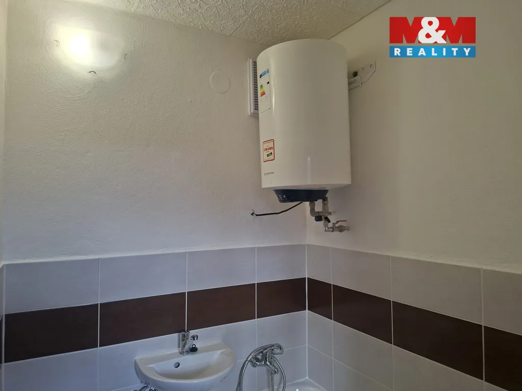 Vytápění je řešeno topením na tuhá paliva, což umožňuje regulaci nákladů dle vlastní spotřeby. Ohřev vody zajišťuje bojler, kotel je umístěn na chodbě v bytě.