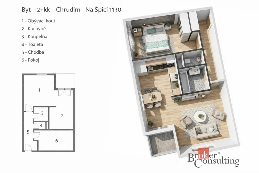 Dlouhodobý pronájem bytu 2+kk o celkové výměře 58 m² v žádané lokalitě Na Špici, v Chrudimi. Byt se nachází v 1. podlaží zděného bytového domu, který byl zkolaudován roku 2018. Součástí je i lodžie o rozloze 3,5 m² a sklep o rozloze 1,5 m². Byt se pronajímá částečně vybaven: kuchyňská linka, vestavěné spotřebiče, pračka a skříň na chodbě.
