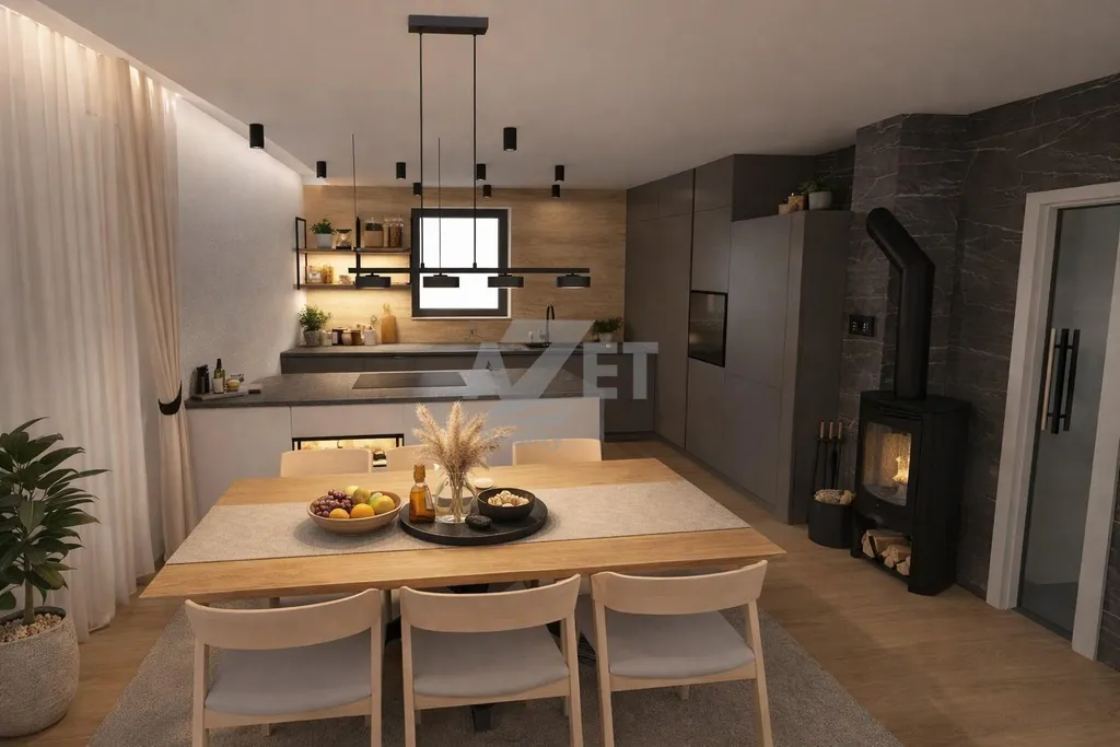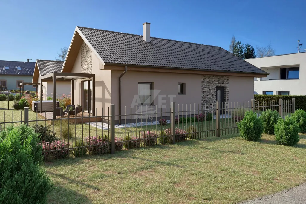 Tento rodinný dům je projektován s ohledem na efektivní využití prostoru a komfortní rodinné bydlení. Dominantou domu je prostorný obývací pokoj s kuchyňským koutem o rozloze 32 m (8 m x 4 m), který je prosvětlen velkým francouzským oknem a terasovými dveřmi. Toto otevřené uspořádání poskytuje přirozené světlo po celý den a nabízí přímý přístup na navazující terasu. Zájemce si také může za příplatek nechat zhotovit kuchyňskou linku na míru s ostrůvkem dle navržené dispozice nebo zvolit úplnou variantu dokončení stavby včetně interiéru na klíč. Včetně služeb bytového architekta zdarma.