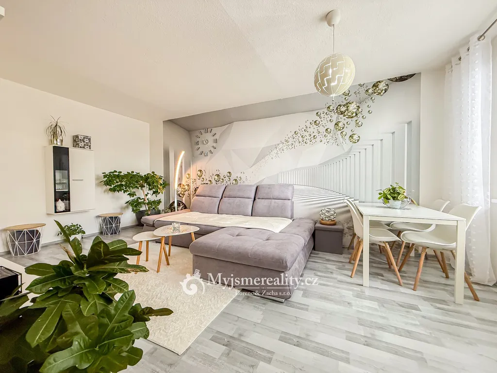 Byt o dispozici 3+1 s balkonem a prostorným zděným sklepem (4x4m) nabízí 73 m2 podlahové plochy.