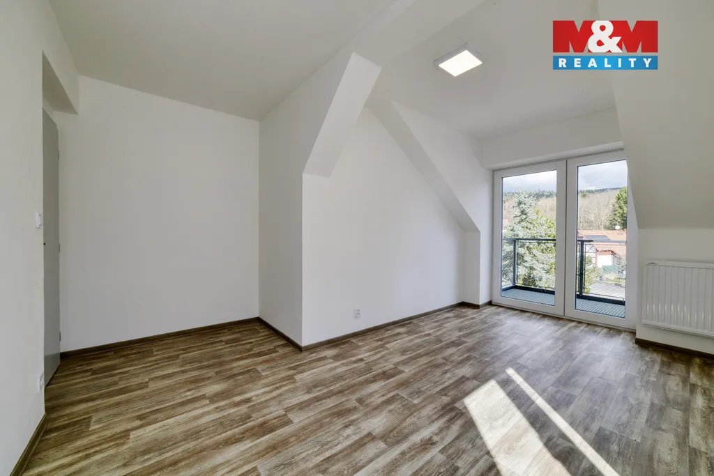 Pronájem nezařízeného bytu č.7, 3+kk se 2 balkony, 61 m² po rekonstrukci v městské části Úšovice. Byt v cihlovém domě v 2. patře domu. Parkování na vlastním parkovišti - za úhradu 500 Kč/měsíc anebo na ulici. Dům má celkem dvě patra. Dispozice bytu: pokoj s kuchyňským koutem, dva pokoje a koupelna s WC. Dřevěným schodištěm vstup do podkrovní místnosti. Vytápění vlastním tepelným čerpadlem. Teplá voda elektrickým bojlerem. Světlý, útulný, orientovaný na SV a JZ vhodný pro max. 4-člennou rodinu. Volný přibližně od poloviny dubna 2026. Celý dům je určen pro bydlení pouze nekuřáků, bez domácích zvířat. Majitel preferuje zaměstnané zájemce a vyhrazuje si právo výběru nájemce dle jím zvolených podmínek a kritérií. K nájmu se hradí záloha na služby. Elektřina se hradí na základě smlouvy s dodavatelem. Provize realitní kanceláře se hradí při podpisu rezervace nemovitosti. V den podpisu nájemní smlouvy je nutné zaplatit kauci ve výši dvou měsíčních nájmů. Další informace u realitního makléře
