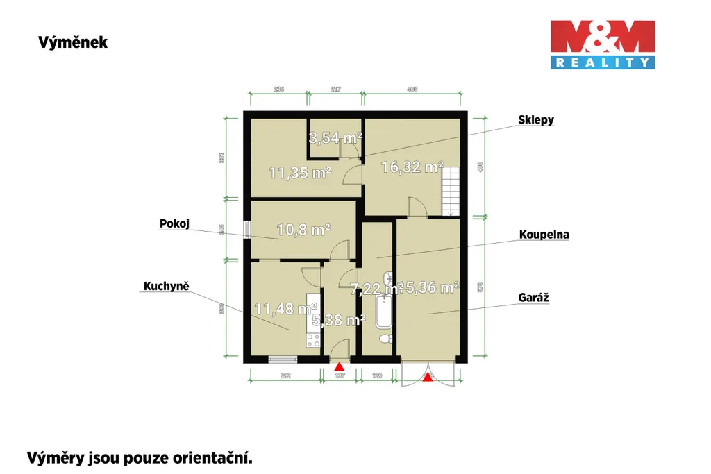 Součástí prodeje je také samostatný vedlejší objekt – výměnek s vlastní kuchyní, obytným pokojem, koupelnou a WC. K objektu náleží garáž, sklad, sklep na ovoce a zeleninu a technická místnost s kotlem na tuhá paliva. V podkroví je připraven prostor pro vybudování další obytné jednotky.