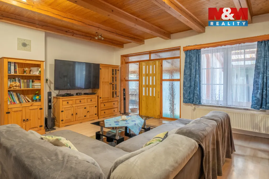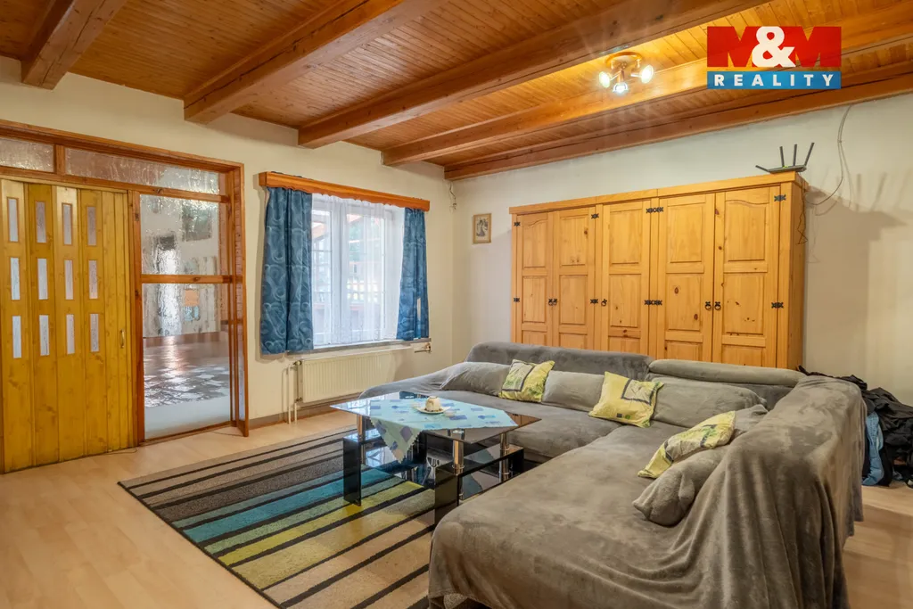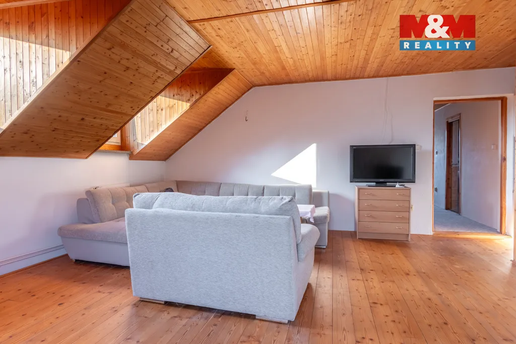 Nabízíme k prodeji dvougenerační dům se zahradou, o celkové výměře 2829 m2. Přízemí domu o ploše 161 m2 zahrnuje kuchyň, obývací pokoj, ložnici, koupelnu, WC, kotelnu, zimní zahradu s přístupem do venkovní pergoly. V prvním patře o výměře 112 m2 je kuchyně, obývací pokoj, dva pokoje, koupelna a WC. Obě bytové jednotky jsou samostatné a mají pouze společnou vstupní halu. Dům je napojen na vlastní vrt, vytápění nově nainstalovaným kotlem na tuhá paliva, odpad je svedený do septiku s trativodem. Nemovitost je částečné podsklepená, sklep cca 12 m2. Na pozemku u domu se nachází pergola s grilem, udírna, garáž o výměře 57 m2, kotec pro psy, voliéra a dřevníky. Celý pozemek je oplocen, podél pozemku jsou vysázené okrasné keře, thuje a ovocné stromky. V okolí možnost procházek, rybaření, koupání v řece. nyní probíhá revitalizace okolí a následná výstavba cyklostezky. Cca 800 m je vlakové a autobusové nádraží, Billa a nové nákupní centrum s Albertem, lékárnou, McDonald a dalšími obchody.