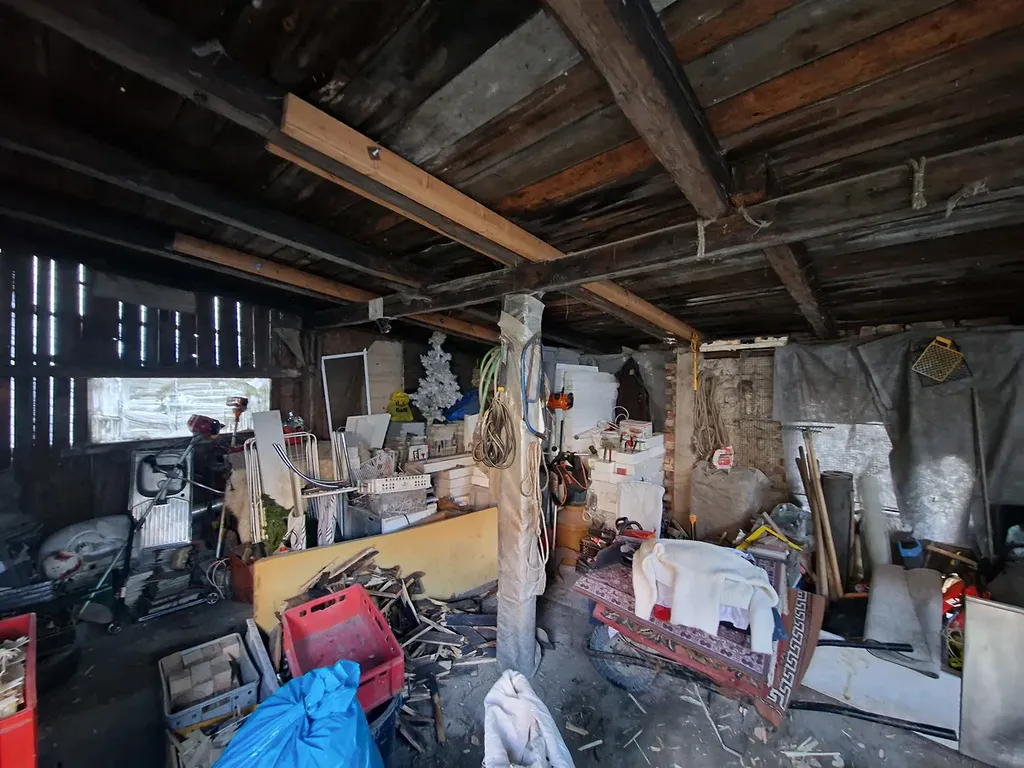 Za domem se nachází prostorná zahrada, se vzrostlými stromy. Na pozemku za domem instalována dřevěná kůlna, která je velmi zachovalá.