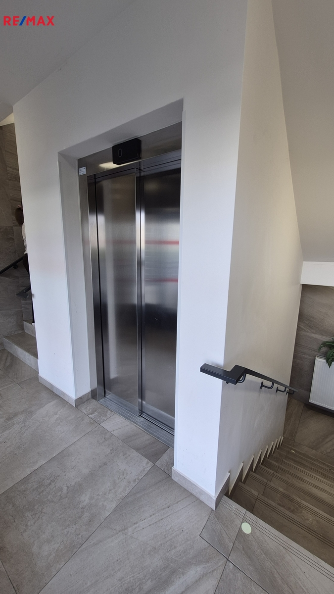 Byt se nachází v 7. patře (nejvyšším) domu s výtahem, bezbariérovým přístupem a nabízí výhledy do okolí. Celková podlahová plocha bytu je 83,7 m² a k dispozici jsou dvě terasy 3,3m2 a 6,9m2 , sklep 3,5m2 a garážové stání.
