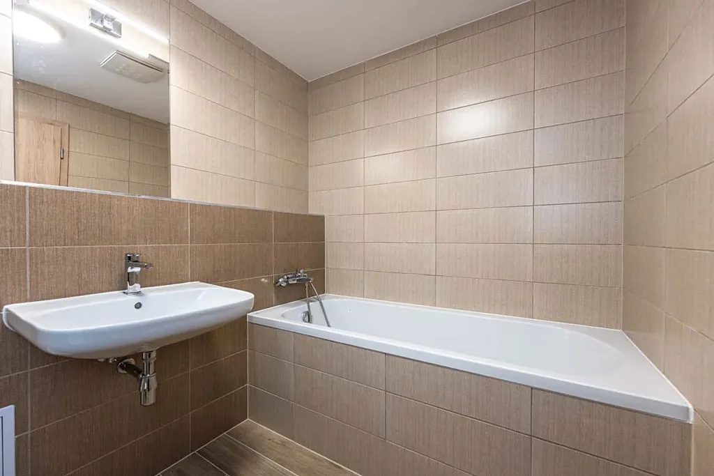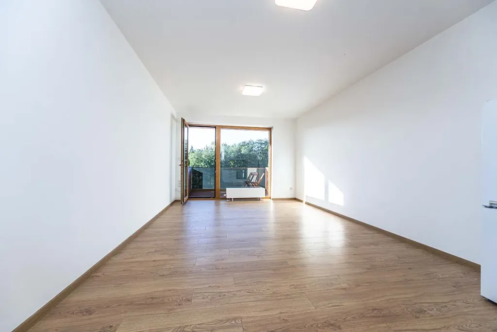 Slunný byt ve 4. NP novostavby s výtahem, orientovaný na jih. Dispozice: předsíň, obývací pokoj s kuchyňským koutem a vstupem na balkon, koupelna s vanou a WC.