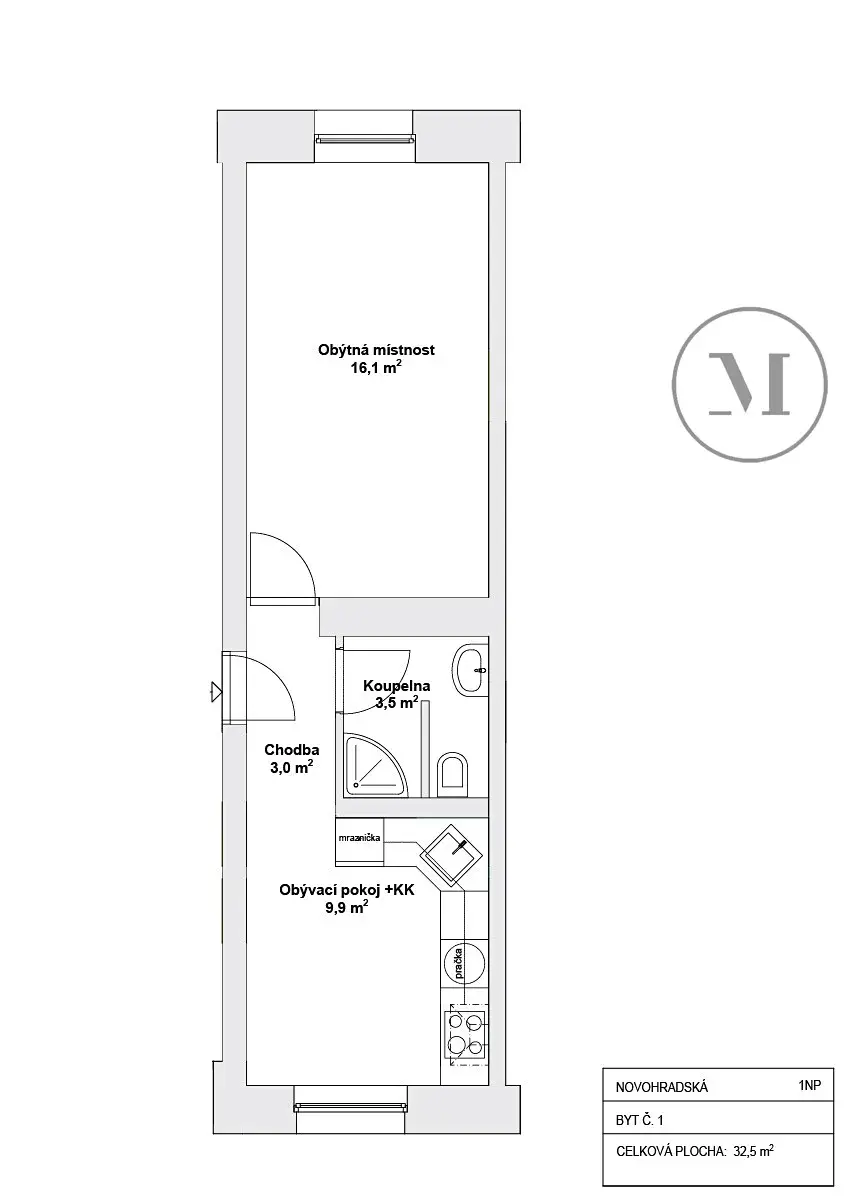 Nabízíme k pronájmu moderní byt 1+1 o velikosti 33 m², situovaný v 1. nadzemním podlaží kompletně zrekonstruovaného domu na adrese Novohradská 74. Dům má pouze 6 bytových jednotek, což zajišťuje příjemné a nerušené bydlení.