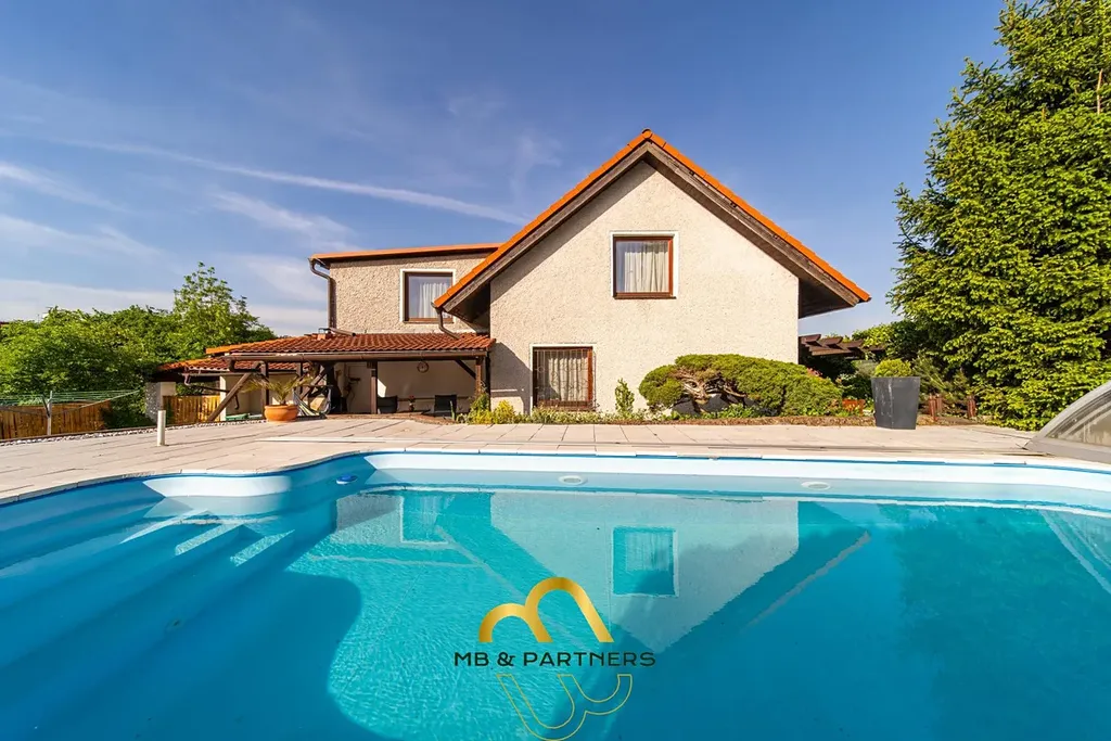 Kvetoucí zahrada se vzrostlými stromy nabízí dostatek prostoru, příjemné soukromí si užijete u bazénu i ve venkovním západně orientovaném zákoutí terasy za domem s grilem. Bazén z roku 2009 o velikosti 8 x 4,5 m, plněný ze studny, s filtrací a ohřevem vody tepelným čerpadlem, dopřeje luxusní koupání s výhledy z kopce Samohelka, co Vás neomrzí.