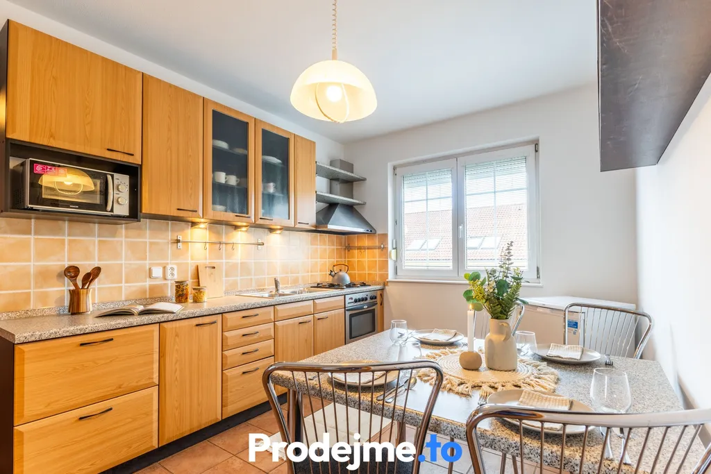 Byt ve 3. patře cihlového domu překvapí velkorysou plochou 95 m² v dispozičním řešení 3+1. Prodává se přesně tak, jak ho vidíte na fotkách. Zůstává v něm veškerý zobrazený nábytek i vybavení – od postelí přes sedací soupravu až po úložné skříňky. Můžete se tak rovnou nastěhovat, nebo byt začít obratem pronajímat bez dalších investic do zařizování.