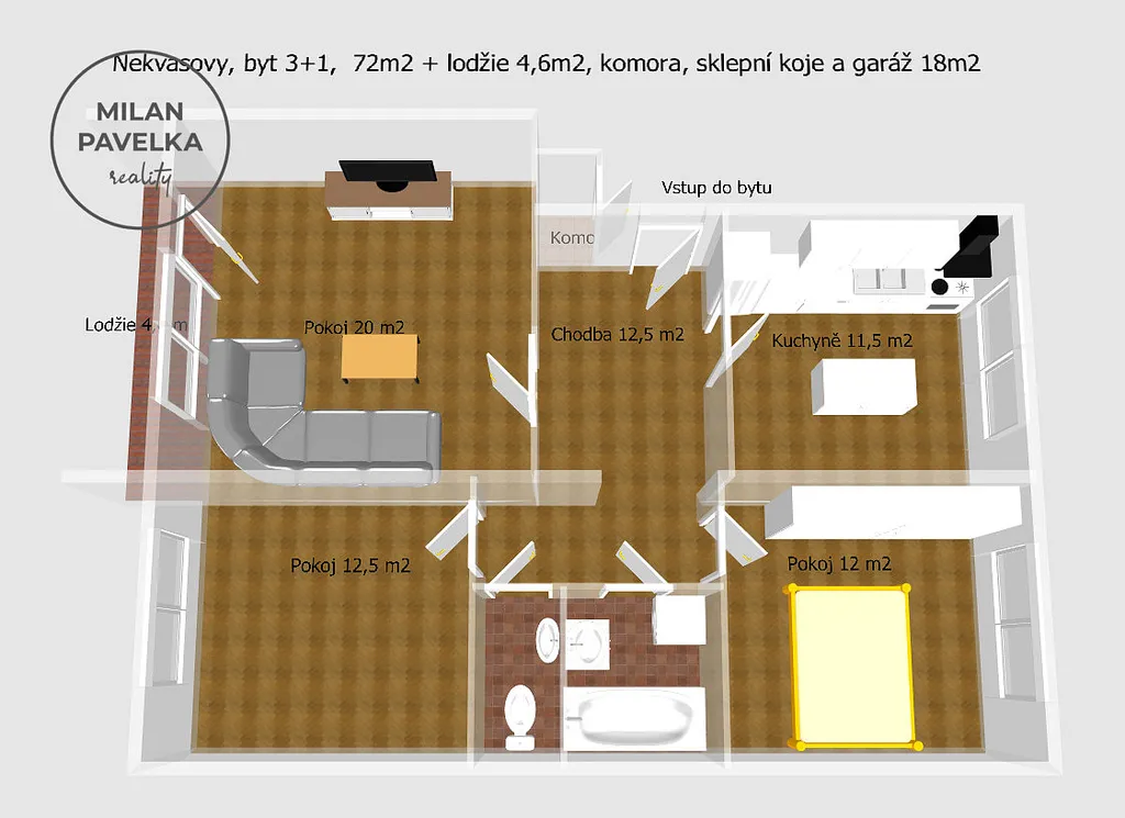 Nekvasovy, byt 3+1 72 m² + lodžie 4,6 + koje a sklep + garáž 18 m²
