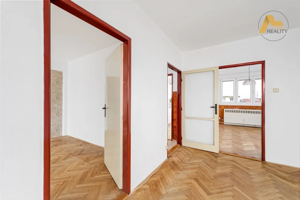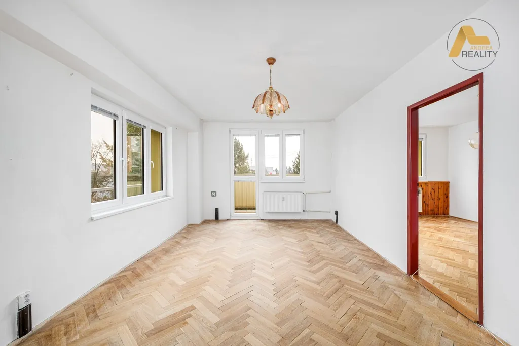Byt disponuje třemi samostatnými, světlými a vzdušnými místnostmi, které nabízejí ideální rovnováhu mezi soukromím a otevřeným prostorem. Interiér vás hned při vstupu prostornou předsíní okouzlí vůní zachovalých broušených parket, které dodávají prostoru teplo, přirozenou eleganci a příjemnou atmosféru domova.