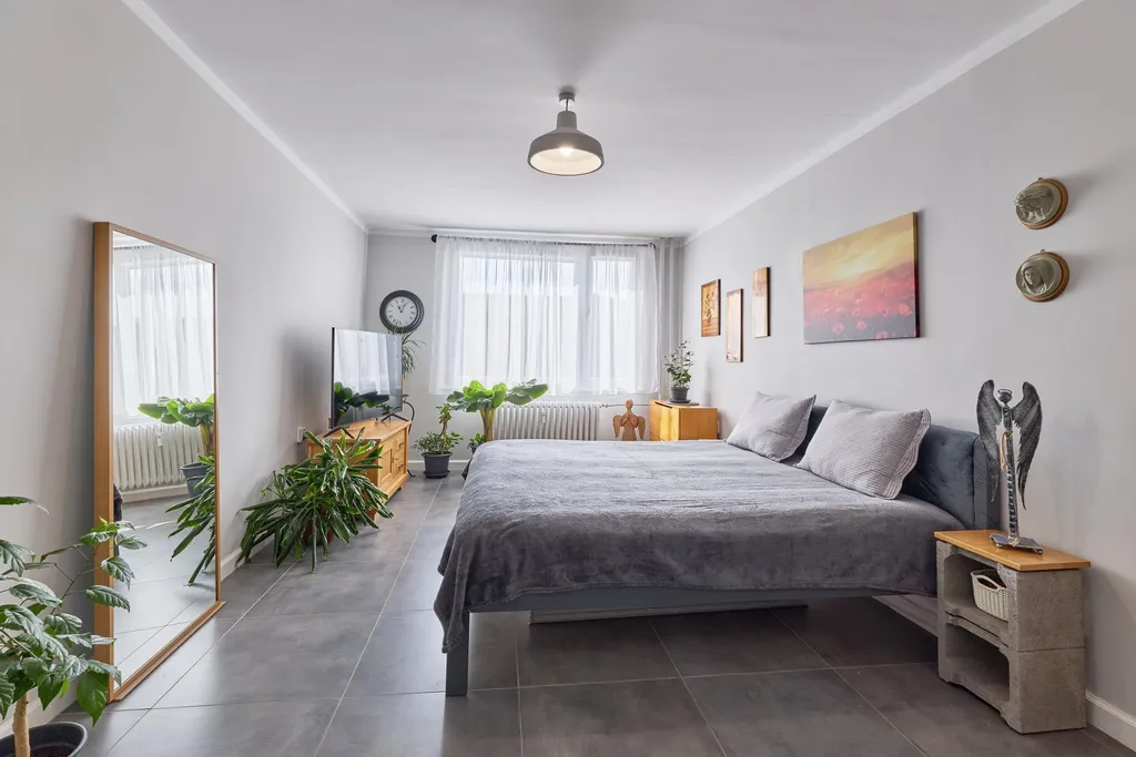 Byt je po kompletní rekonstrukci, provedené s citem a důrazem na detail a uživatelskou přívětivost. Interiér tak působí velmi příjemně, harmonicky a nadčasově. Dominantou prostoru je promyšlené propojení moderních prvků s útulnou atmosférou domova, kde každý detail má své místo.