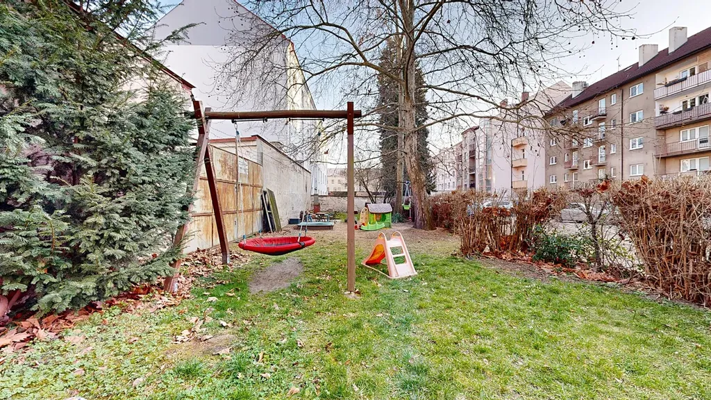 Velkým benefitem je vlastní parkovací místo za domem, přístupné přes uzamykatelnou bránu, zajišťuje bezpečné parkování. Ve vnitrobloku se navíc nachází dětské hřiště, ideální pro rodiny s dětmi.