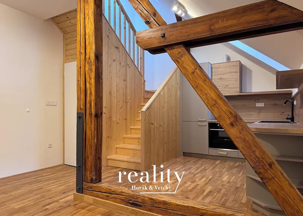 Byt zaujme vzdušným dispozičním řešením a dostatkem denního světla. Spodní část tvoří obytný prostor s kuchyňským koutem a koupelnou, horní patro nabízí klidovou zónu s ložnicí a dalším pokojem vhodným jako pracovna či dětský pokoj. Díky mezonetovému řešení působí byt velmi prostorně a zároveň útulně.