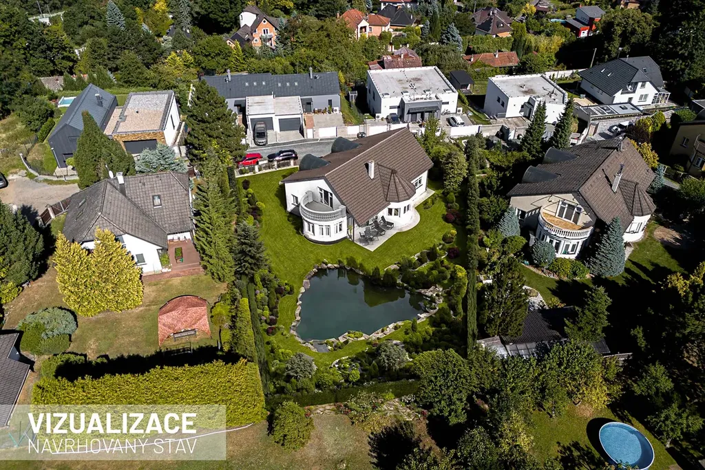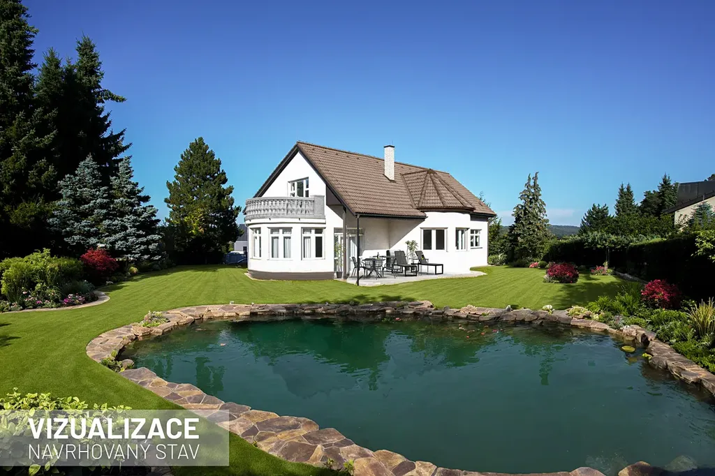 Zahrada se vzrostlými stromy byla navržena zahradním architektem a poskytuje maximální soukromí i prostor pro odpočinek. K dispozici je již připravená jáma pro realizaci bazénu nebo přírodního jezírka dle vašich představ.