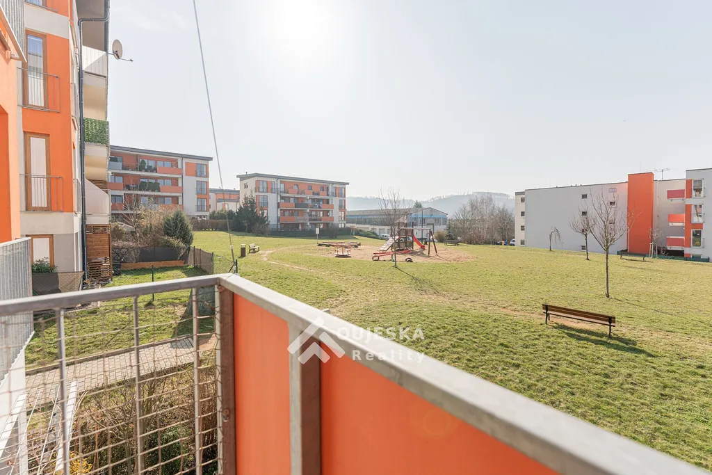 Na obytnou část plynule navazuje terasa o výměře 14 m², ideální pro relaxaci i posezení s rodinou či přáteli. Velkým benefitem je přímý vstup na terasu ze všech obytných místností. Z terasy je navíc příjemný výhled na dětské hřiště.