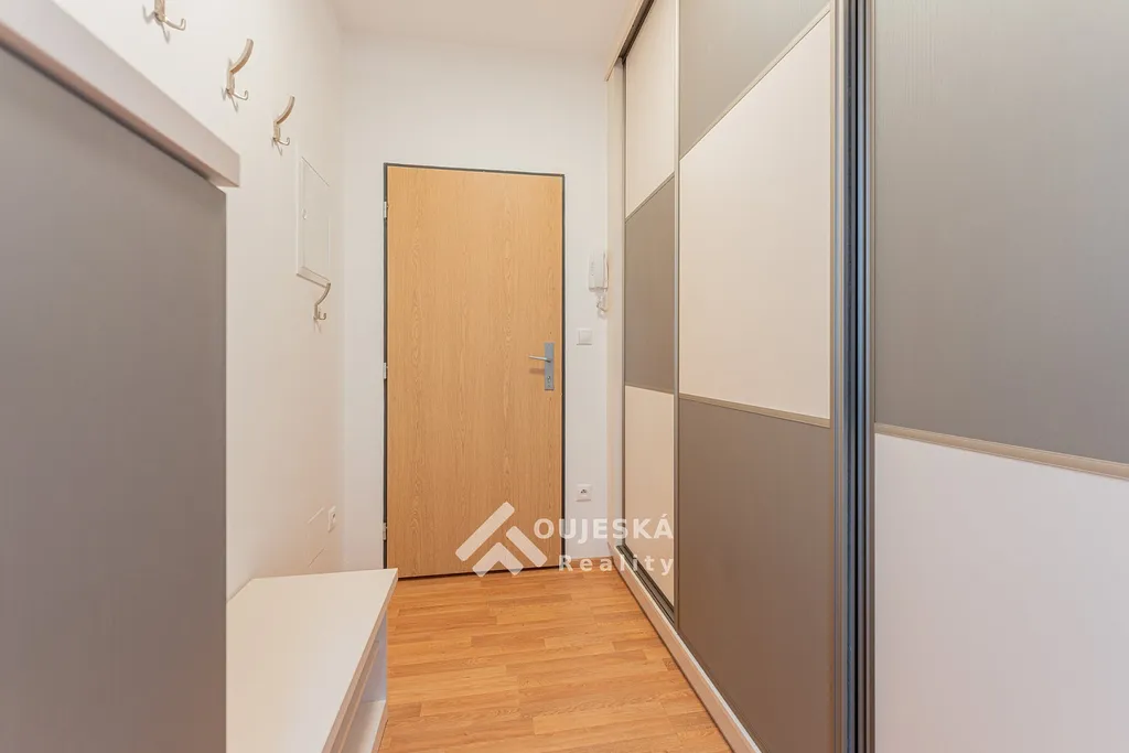 K bytu náleží také praktická komora umístěná na chodbě, která poskytuje dostatek úložného prostoru.