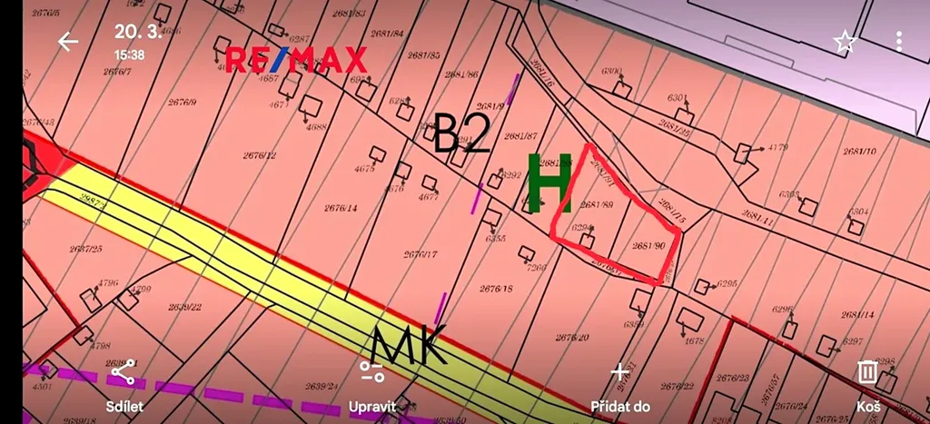 Dle územního plánu je pozemek zařazen do plochy B2 – bydlení rodinného charakteru, což do budoucna umožňuje výstavbu rodinného domu. V současné chvíli však není možné realizovat výstavbu, a to z důvodu absence přístupové komunikace. Dle dostupných informací ze stavebního úřadu se s vybudováním přístupové cesty do budoucna počítá, přesný časový horizont však není znám.