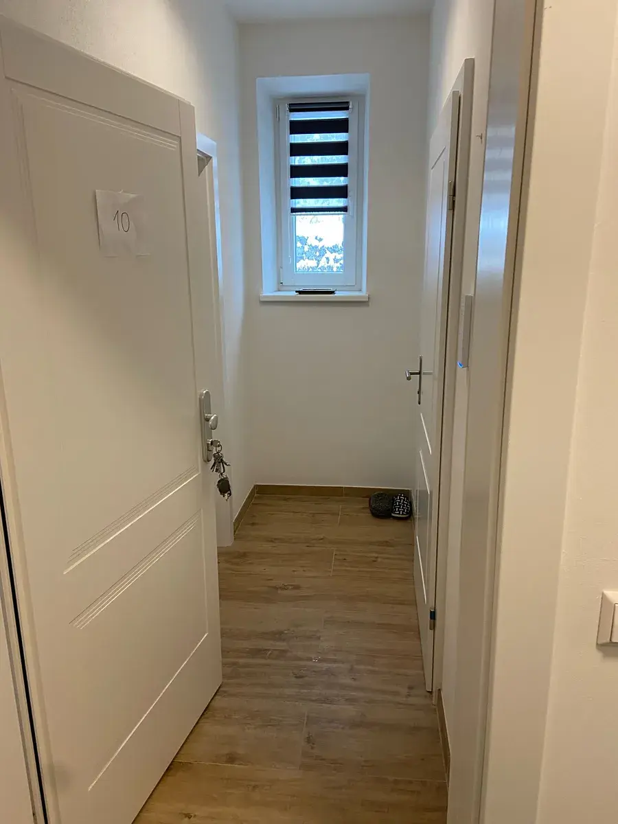 Byt o vel. 51m2 se nachází v 1. patře, patří k němu balkon 8m2 a sklep 10m2. Je plně vybaven a vybavení je součástí ceny. K bytu náleží i spoluvlastnictví na pozemku okolo domu a společné prostory. Byt je situován v zadní části domu, tedy není u silnice. Parkování je zdarma za domem, kde se nachází i posezení a možnost grilování a opékání u ohně. Měsíční náklady jsou momentálně 170 Euro a budou se snižovat, je v nich zahrnut otop, voda, společné prostory, pojištění a údržba domu a okolí (odklízení sněhu, sekání trávy,...), v nákladech není zahrnuta elektřina.