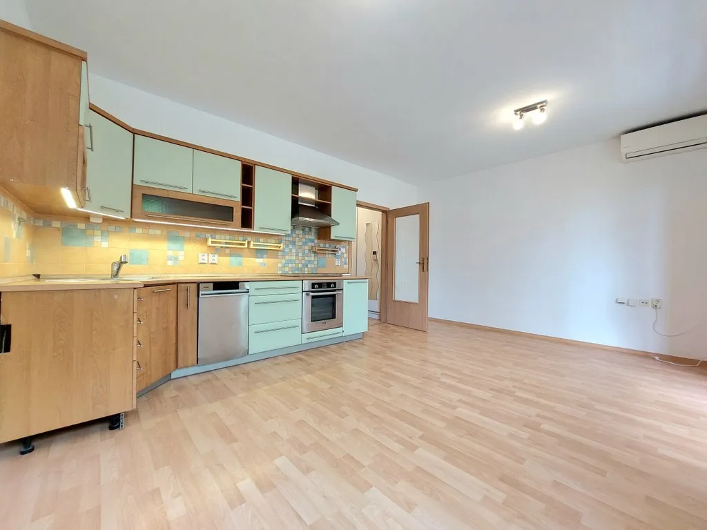 Byt se nabízí částečně vybavený. Kuchyně disponuje novou myčkou, elektrickou troubou, varnou deskou a digestoří. Obývací část je volná pro nábytek dle Vašich představ a je zde i klimatizace. Součástí ložnice je velká vestavěná skříň i s osvětlením. V koupelně je vana, umyvadlo a toaleta. V předsíni najdeme ještě jednu vestavěnou skříň. Z obývací části se jde na prostornou předzahrádku s krytou terasou, která díky stromům v okolí poskytuje příjemné soukromí.