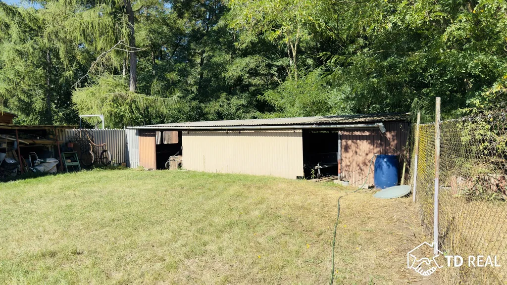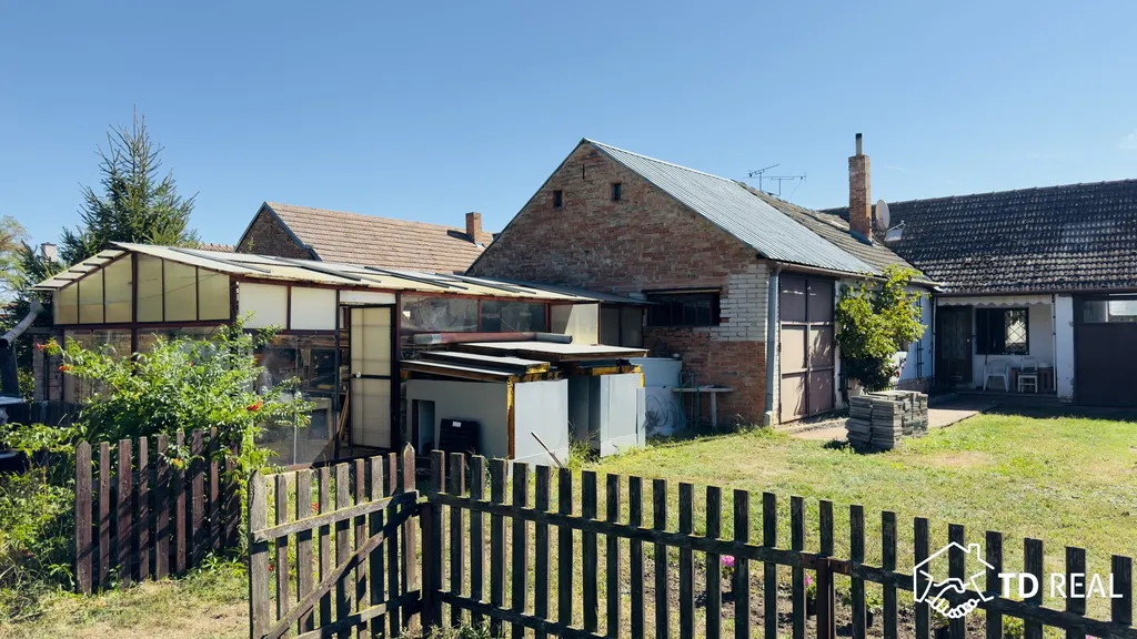 Součástí domu je i průjezdná garáž, dům je určen ke kompletní rekonstrukci – nabízí tak skvělou příležitost vytvořit si útulné a cenově dostupné bydlení.