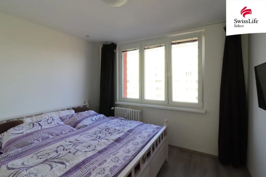 Ložnice je klidná a útulná, orientovaná mimo hlavní ruch, což zajišťuje pohodové bydlení. Velkou výhodou je umístění v 5. patře, díky kterému byt nabízí nejen dostatek světla, ale i klid bez hluku z ulice.