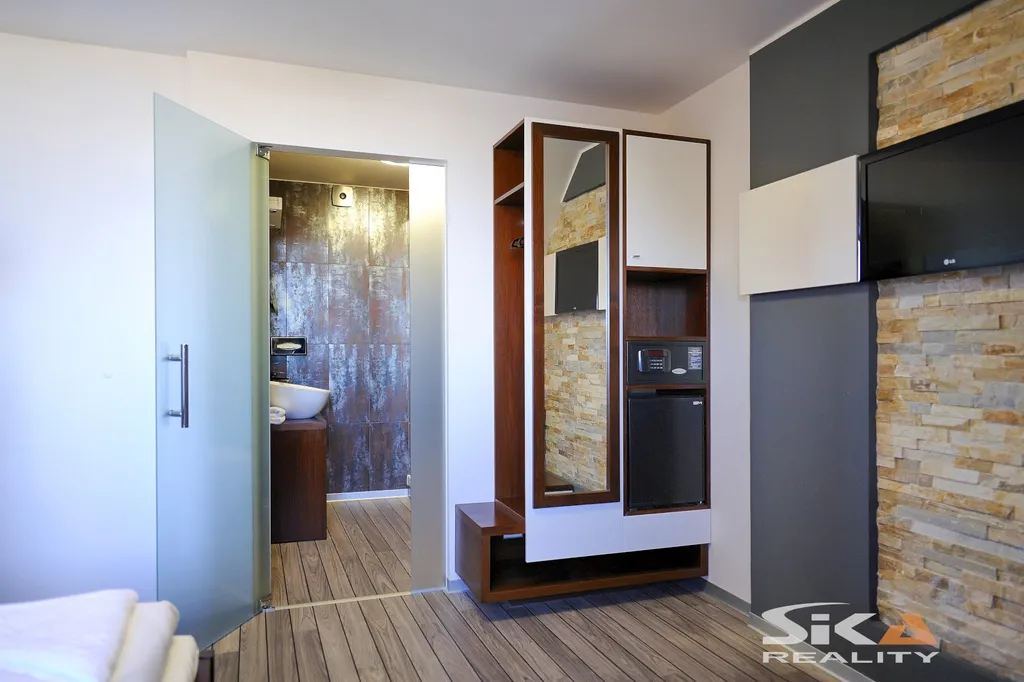 Klíčové parametry nemovitosti: Lokalita: historické centrum města Louny – nejprestižnější adresa ve městě. Dispozice: 1 podzemní podlaží, 4 nadzemní podlaží a využité podkroví. Kapacita: 10 plně vybavených pokojů (6 dvoulůžkových, 4 jednolůžkové). Vybavení: Osobní výtah, vybavená kuchyně, lobby bar, zastřešené atrium. Navíc: Venkovní terasa postavená přímo na městských hradbách se zastřešeným pódiem. Bonus: Nemovitost je nabízena včetně inventáře a vybavení.
