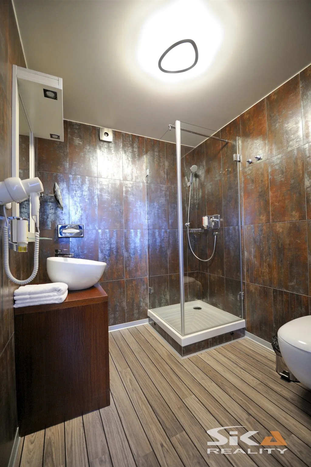 Technický stav: Objekt je v provozu od roku 2011 a byl průběžně udržován, přesto je třeba počítat s investicemi do modernizace či obnovení prvků krátkodobé životnosti. Upozorňujeme na potřebu opravy netěsnosti střešního pláště v severovýchodním rohu atria (nutnost opravy zatékání). Tato skutečnost je zohledněna v nabídkové ceně.