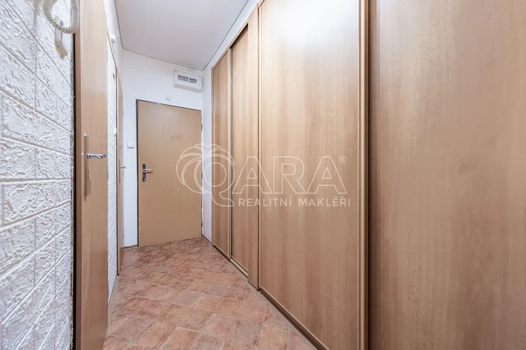 Dispozice zahrnuje prostorný obývací pokoj s výhledem do zeleně, samostatnou ložnici, samostatnou kuchyni s částečně rekonstruovanou kuchyňskou linkou, předsíň s velkými vestavěnými skříněmi, a koupelnu s vanou a umyvadlem, dále samostatnou toaletu. V bytě jsou vestavěné skříně, nové podlahy v obývacím pokoji a ložnici, vinylová podlaha v kuchyni a předsíni, protihluková stěna v obývacím pokoji a nové podhledy. Částečně jsou také nové rozvody elektřiny. Koupelna a toaleta jsou vybaveny dlažbou a obklady.