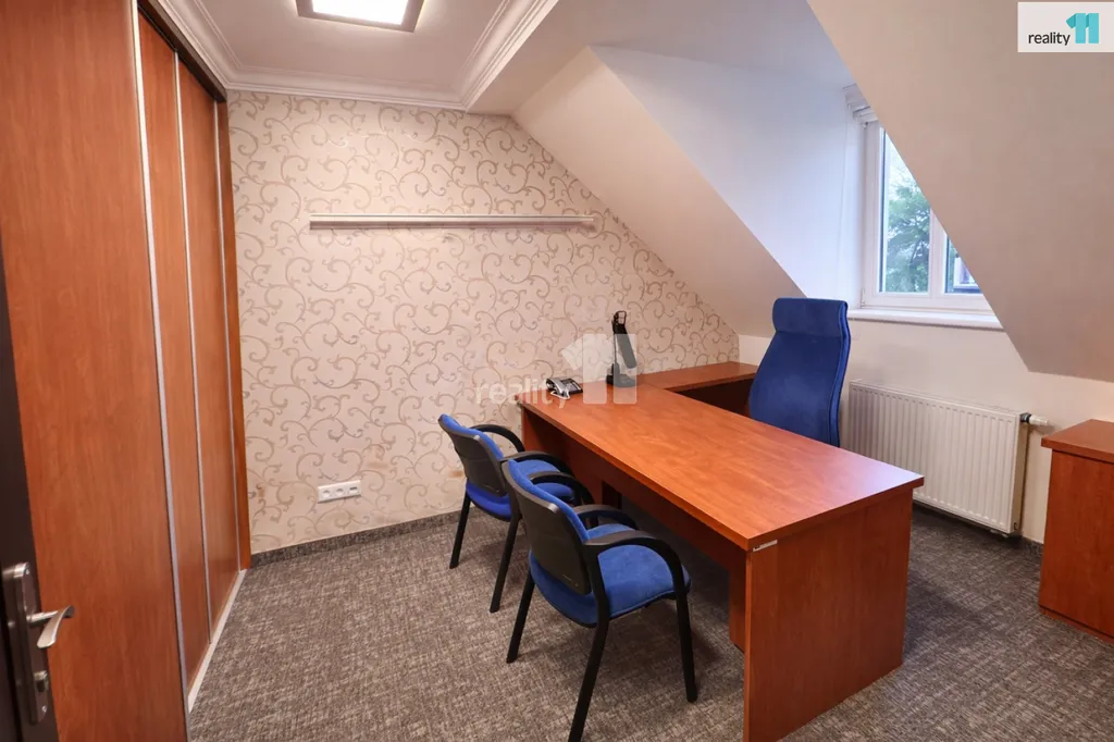 Interiér je vybaven kvalitním nábytkem na míru, který dodává prostoru elegantní a profesionální vzhled – ideální pro reprezentaci klientů.