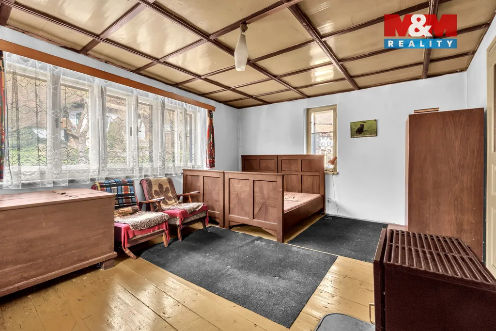 Dům se smíšenou konstrukcí disponuje užitnou plochou cca 80 m². Dispozičně v tuto chvíli nabízí 3 obytné místnosti, dílnu, dřevník a sociální zařízení. Dům je částečně podsklepen a prostorná půda nabízí možnost realizace obytného podkroví pro rozšíření užitné plochy.