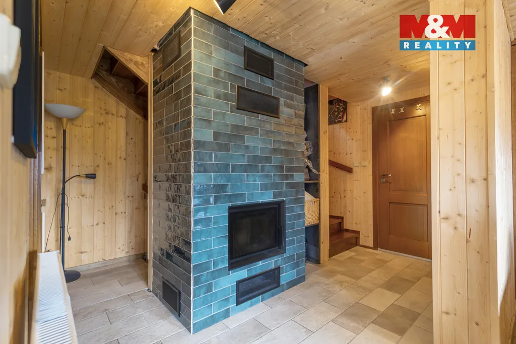 Samotná chata má dispozici 3+1. Najdete zde prostornou koupelnu s vanou i sprchovým koutem a dvě toalety. Z obývacího pokoje se vstupuje přímo na terasu, která propojuje dům se zahradou. Vytápění je řešeno kombinací plynového kotle a krbu, který dokresluje horskou atmosféru.