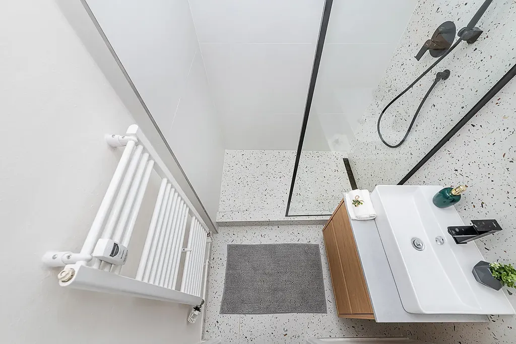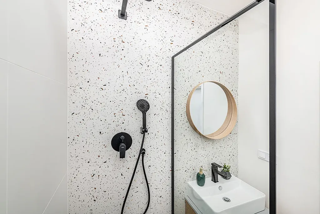 Dispozici bytu tvoří neprůchozí ložnice s francouzským oknem, velkorysý obývací pokoj spojený s kuchyní, prostorná koupelna se sprchovým koutem a samostatný záchod.
