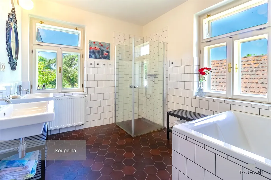 koupelna se sprchovým koutem a velkou 200l vanou (10 m2)